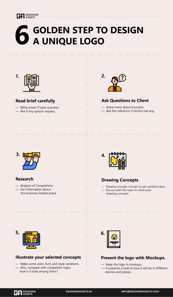 This infographic will provide you with a step by step guide to design a unique logo for your brand. Every beginner faces the same problem in designing a logo and does not know where to start or the steps to follow. These are easy to follow steps to create a unique logo for your brand.